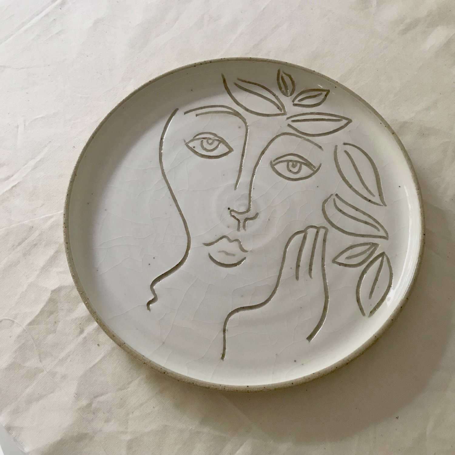 slip painted and individually hand carved plate.